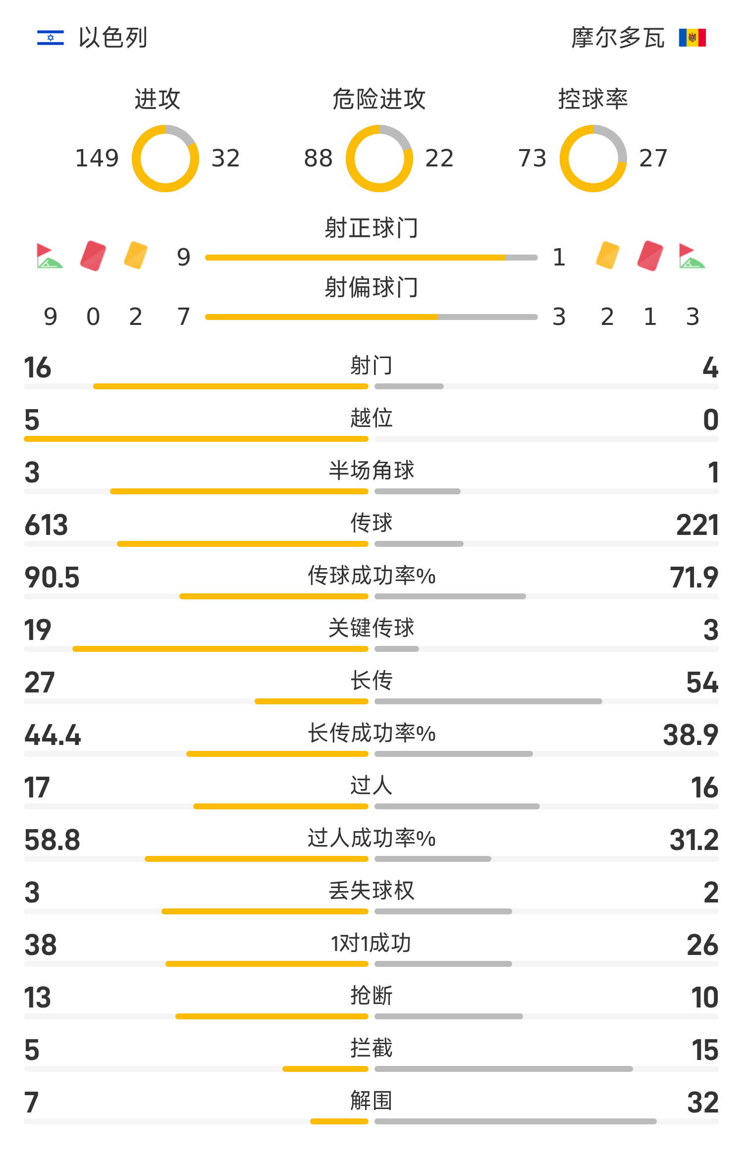 雷速體育11月17日訊 26賽季世歐預(yù)分組賽I組第10輪,以色列4-1戰(zhàn)勝摩爾多瓦。上半場珀西恩直紅下場,圖格曼點(diǎn)射,尼古拉斯庫抽射扳平,下半場雷維沃補(bǔ)射破門,佩雷斯遠(yuǎn)射建功,雷維沃小角度造巴博格羅烏龍。