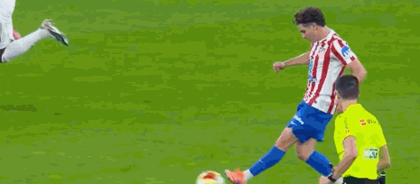 第23分鐘,小西蒙尼禁區(qū)內(nèi)倒地,主裁判沒有判罰