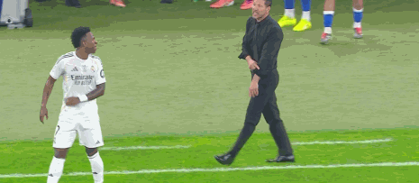 第82分鐘,維尼修斯被換下時(shí),再次和西蒙尼針鋒相對