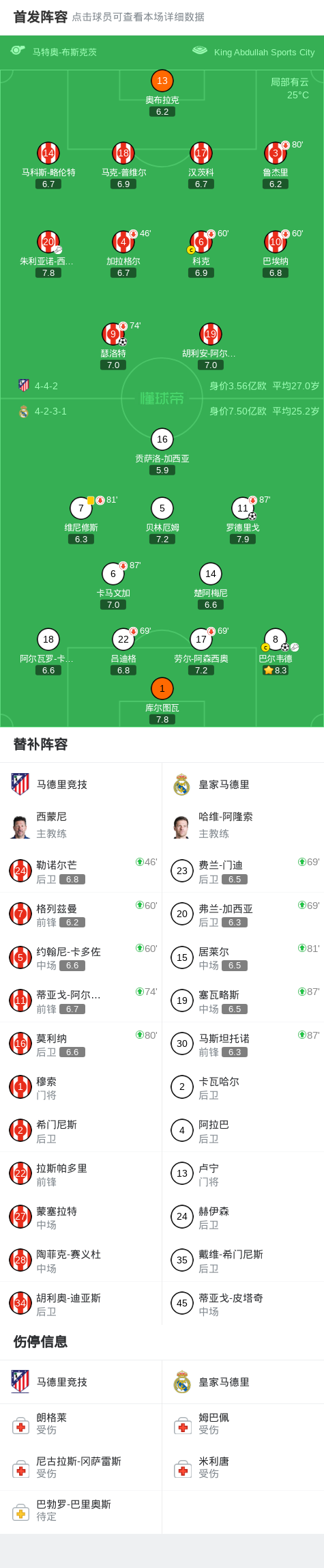 北京時(shí)間1月9日,西班牙超級(jí)杯半決賽展開爭奪,馬德里競技與皇家馬德里展開對決。開場不久,巴爾韋德任意球轟入死角。下半場,巴爾韋德妙傳,羅德里戈破門。隨后,小西蒙尼傳中,瑟洛特頭槌扳回一城。全場比賽結(jié)束,皇馬2-1擊敗馬競,成功晉級(jí)西超杯決賽,他們的對手將是死敵巴塞羅那。