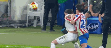 第45分鐘,上半場精彩一幕,西蒙尼疑似和維尼修斯互飚垃圾話