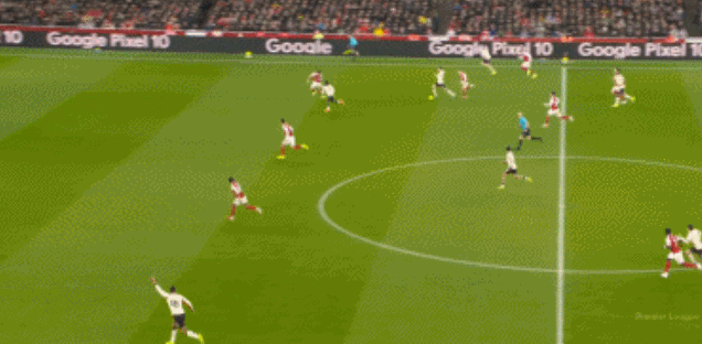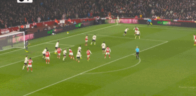 第27分鐘,布拉德利中場得球快速推進(jìn),隨后送出直塞,這球力量有點(diǎn)小被斷,拉亞出擊將加布里埃爾的回傳球解圍,但沒有踢遠(yuǎn),布拉德利得球直接吊門,這球擊中橫梁彈出