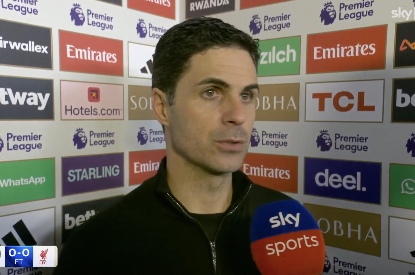 英超第21輪,阿森納主場0-0戰(zhàn)平利物浦,賽后,槍手主帥阿爾特塔接受了天空體育的采訪。