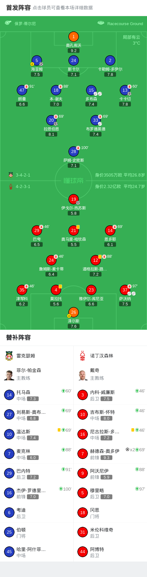 第90分鐘,扳平比分,奧多伊再下一城,森林3-3