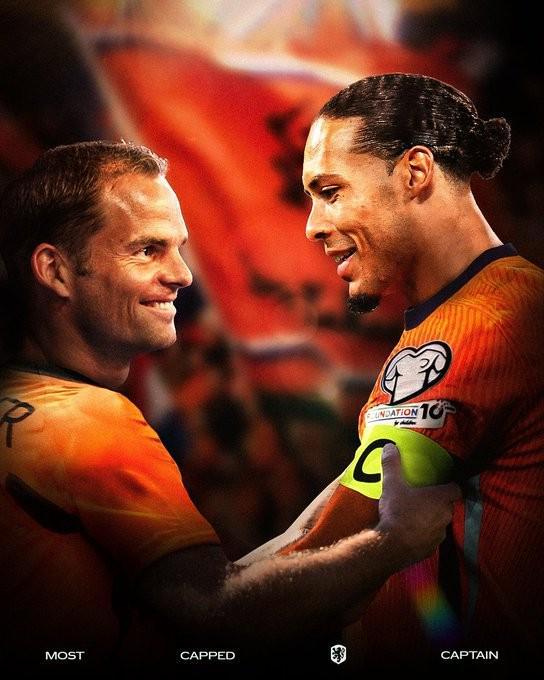 在荷蘭隊(duì)對陣立陶宛的比賽期間,荷蘭隊(duì)官方賬號發(fā)布了一段特別視頻,前主帥弗蘭克-德波爾在視頻中向范戴克送上祝賀。范戴克這場比賽第72次佩戴隊(duì)長袖標(biāo),正式打破德波爾此前保持的隊(duì)史隊(duì)長出場紀(jì)錄。