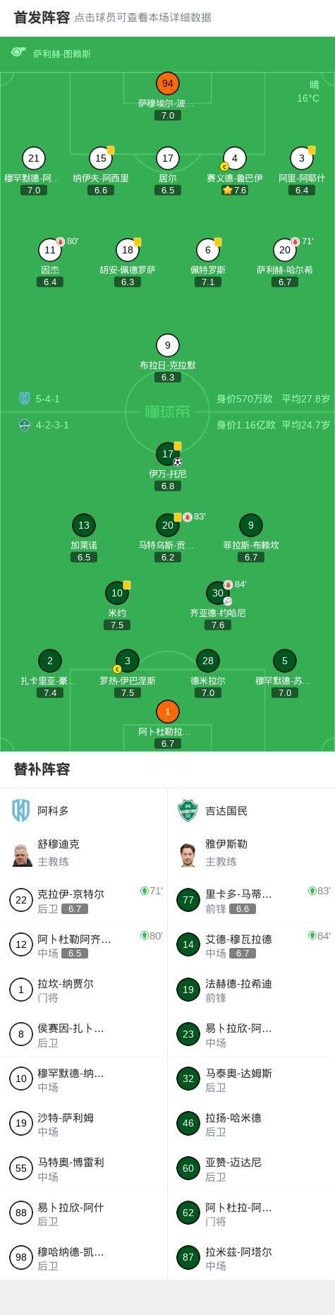 第58分鐘,吉達(dá)國民球員齊亞德-約哈尼助攻伊萬-托尼打入一球。