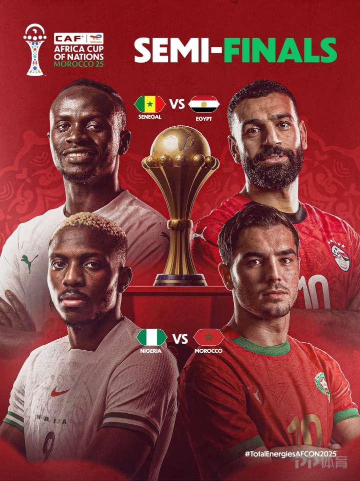 非洲杯1/4決賽戰(zhàn)罷,本屆賽事四強全部確定:塞內(nèi)加爾、摩洛哥、尼日利亞、埃及。半決賽將在1月15日開戰(zhàn),具體賽程如下: