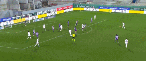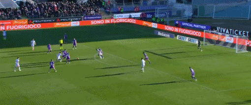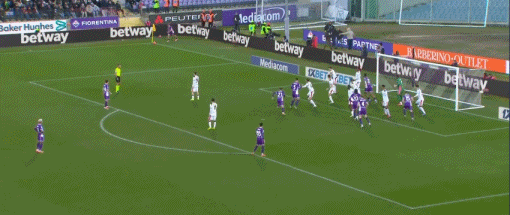 第66分鐘,古德蒙德松開出角球,科穆佐頭球破門,佛羅倫薩1-0米蘭