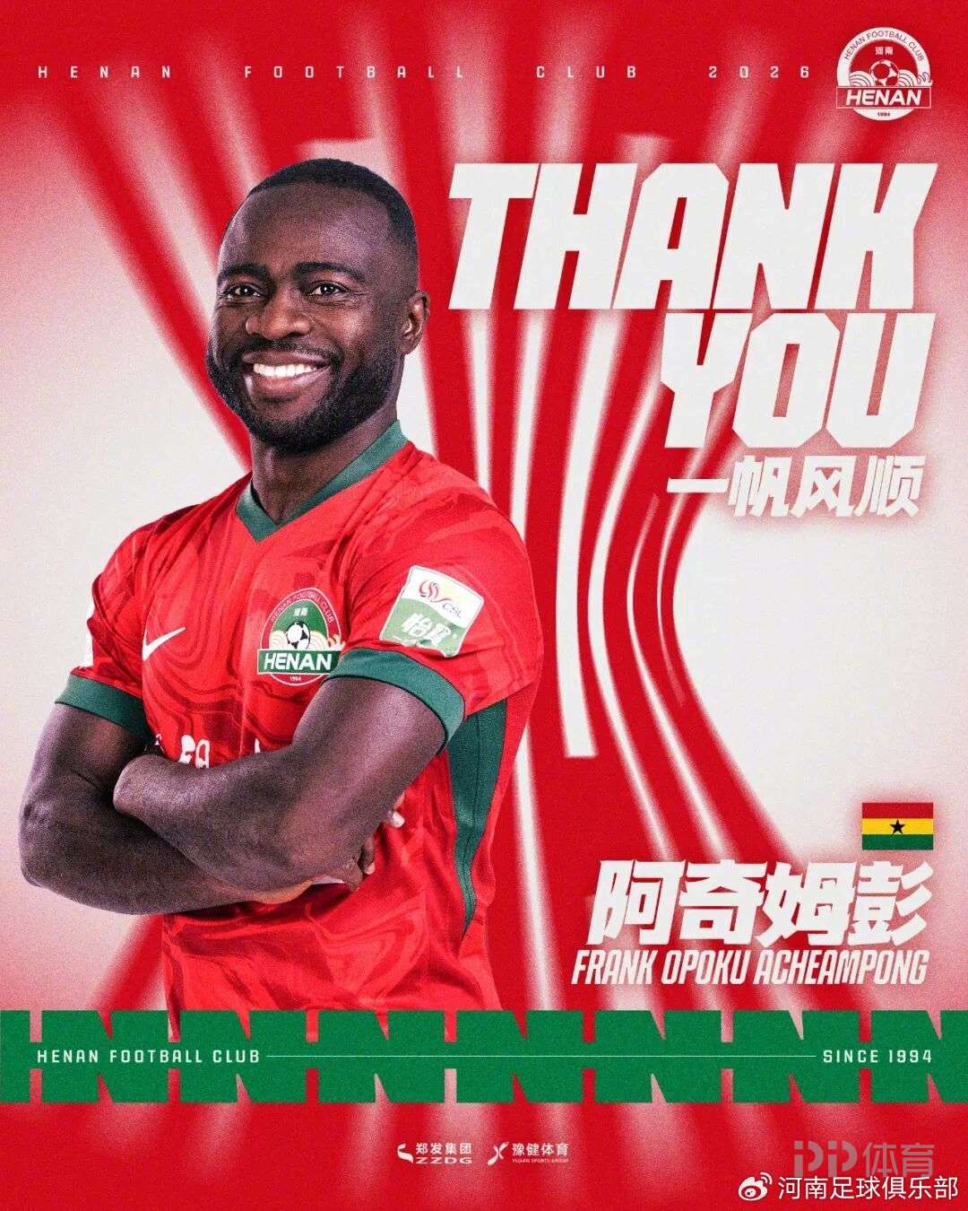 河南隊(duì)發(fā)布官方公告,阿奇姆彭、卡多索、尹鴻博、黃紫昌等10名球員合同到期離隊(duì)。公告如下: