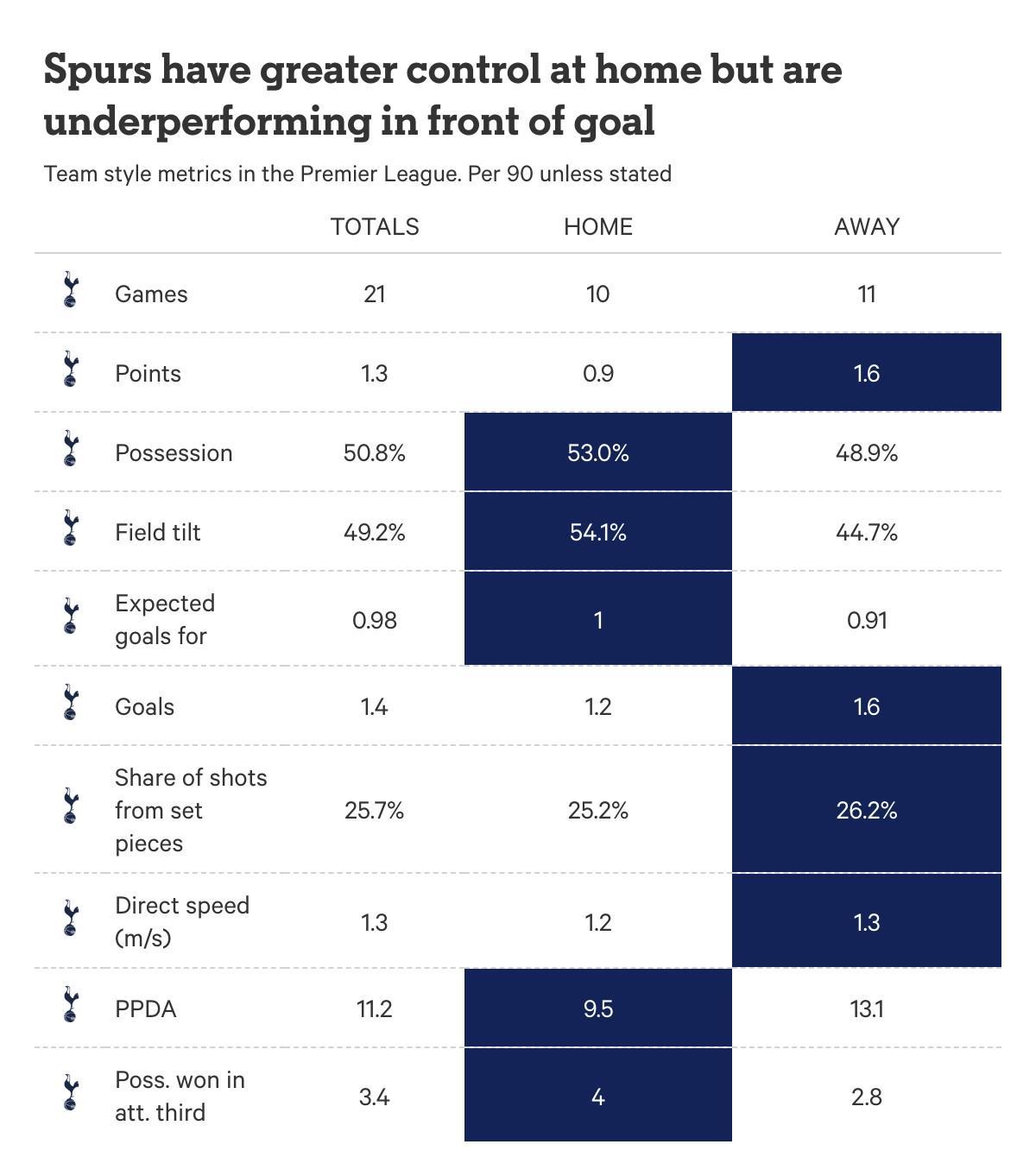熱刺在推進(jìn)進(jìn)攻方面的掙扎,也在其主客場表現(xiàn)的差異中起到了作用。