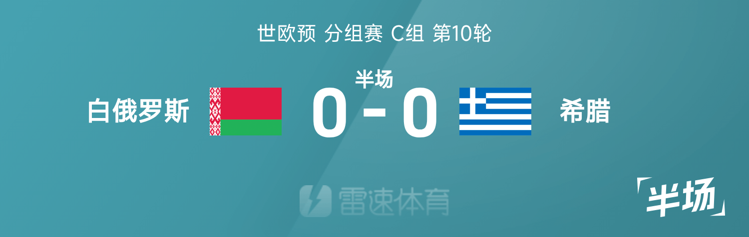 雷速體育11月19日訊 26賽季世歐預(yù)分組賽C組第10輪,白俄羅斯迎戰(zhàn)希臘。半場戰(zhàn)罷,雙方比分暫為白俄羅斯0-0希臘。