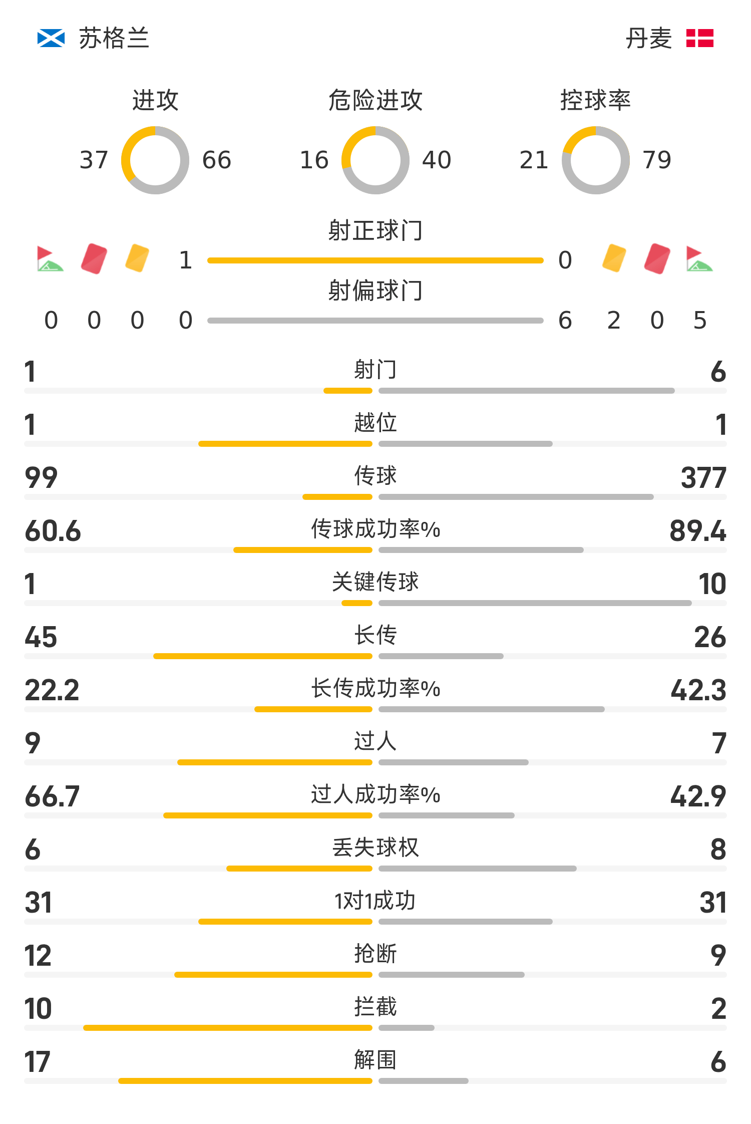 蘇格蘭首發(fā)陣容:1-戈登、5-漢利、3-羅伯遜、16-麥肯納、2-希基、7-麥金、11-克里斯蒂、4-麥克托米奈、19-弗格森、17-多克(21’23-麥克萊恩)、9-戴克斯
