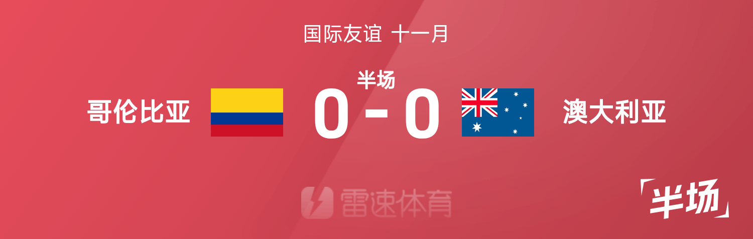 雷速體育11月19日訊 25賽季國際友誼十一月,哥倫比亞迎戰(zhàn)澳大利亞。半場戰(zhàn)罷,雙方比分暫為哥倫比亞0-0澳大利亞。