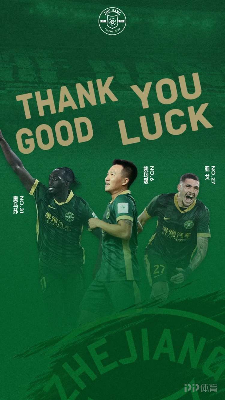 近期,經(jīng)與球員本人友好協(xié)商并達(dá)成一致,浙江職業(yè)足球俱樂部與球員姚均晟、奧烏蘇在合同期滿后不再續(xù)約,球員亞戈租借期滿后返回蔚山現(xiàn)代。