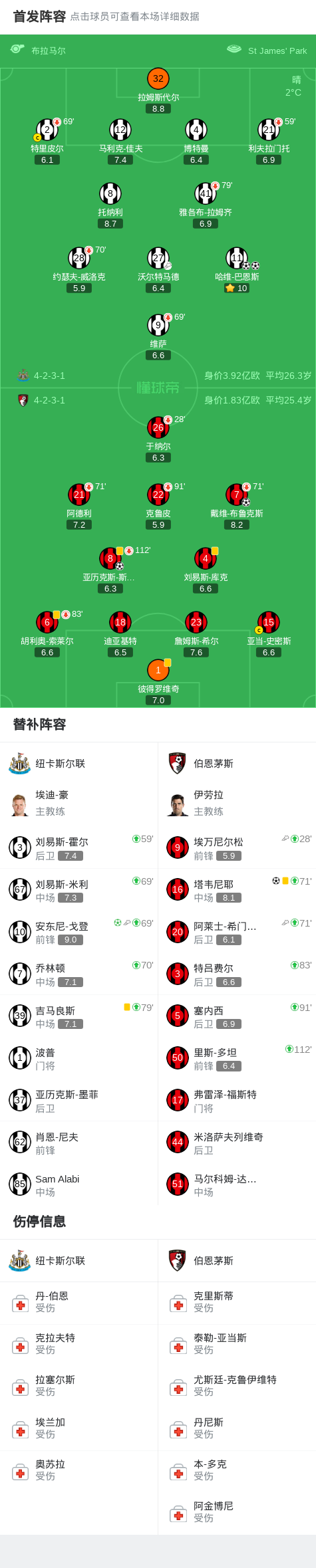第68分鐘,戴維-布魯克斯遠(yuǎn)射破門,伯恩茅斯2-1反超紐卡