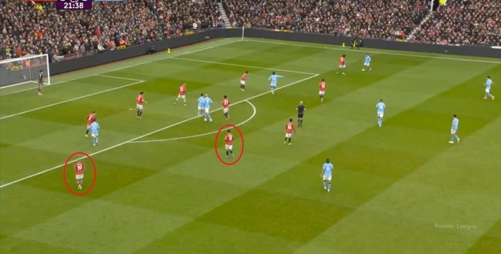 當(dāng)然了,主場(chǎng)作戰(zhàn)的曼聯(lián)在開(kāi)局階段更需要展現(xiàn)強(qiáng)勢(shì),所以在向前的時(shí)候,利用人員層面自然可以拉開(kāi)的寬度優(yōu)勢(shì),曼聯(lián)打得很堅(jiān)決: