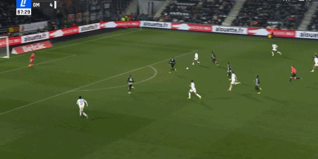 第33分鐘,埃莫森直塞,哈米德-特拉奧雷破門再下一城,馬賽3-0昂熱