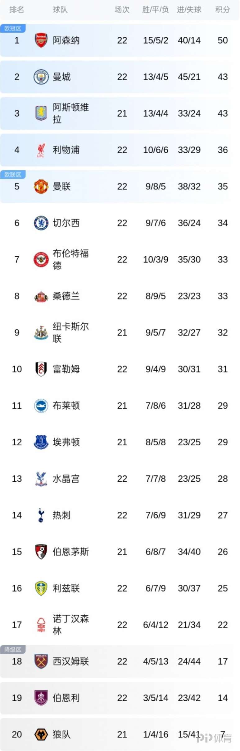 英超第22輪的7場(chǎng)比賽已經(jīng)結(jié)束,積分榜的形勢(shì)出現(xiàn)新的變化。