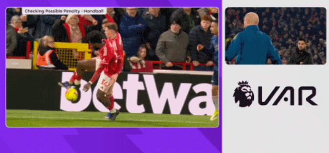 比賽第80分鐘,埃納在本方禁區(qū)內(nèi)拼搶時手臂碰到皮球,隨后VAR介入,主裁判沒有判罰點球。