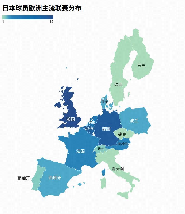 通過德國轉會市場數(shù)據(jù)取樣(涵蓋歐戰(zhàn)積分前二十國家頂級聯(lián)賽及五大聯(lián)賽次級聯(lián)賽),目前共有 85 名日本球員在這些賽場效力,位居亞足聯(lián)國家首位。其中五大聯(lián)賽 20 人、五大聯(lián)賽次級聯(lián)賽 20 人、其余聯(lián)賽 45 人,比甲以 16 人成為日本球員最集中的聯(lián)賽,英冠(10 人)、德甲(10 人)緊隨其后。若以球迷最為看重的五大聯(lián)賽為終極目標,日本球員的登陸路徑值得細細拆解。