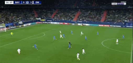 第13分鐘,穆里略倒三角,戈梅斯破門,馬賽1-0巴約