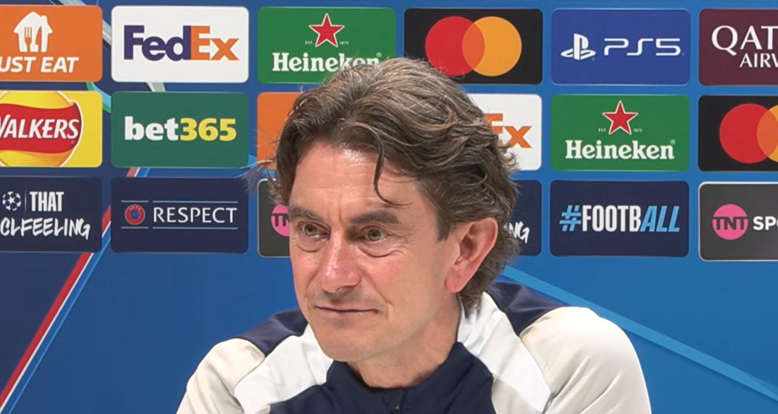 你好,托馬斯。我們都知道這會(huì)是一場(chǎng)非常困難的比賽。即使你有完整陣容也是如此,而你還提到你現(xiàn)在只有 11 名外場(chǎng)球員。另外你說(shuō)你今天和維尼、蘭格以及尼克-普阿一起吃了午飯。他們有沒(méi)有給你一些明確的信息或保證:如果明晚結(jié)果不如你所愿,關(guān)于你的未來(lái)會(huì)怎樣?