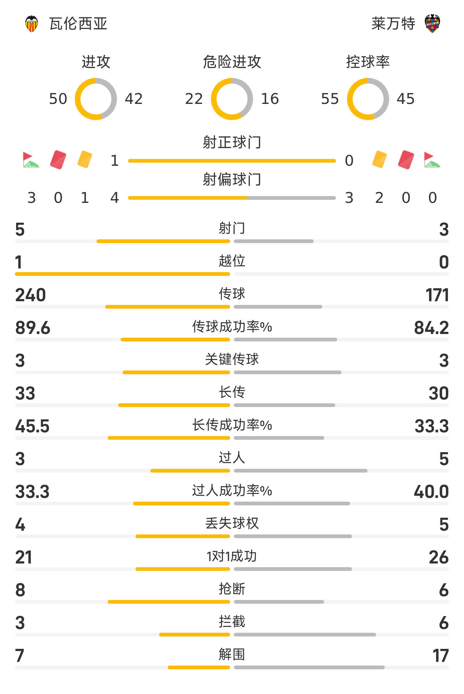 萊萬特首發(fā)陣容:13-瑞恩、22-托連、4-德拉、23-德拉培尼亞、2-莫雷諾、5-伊爾格扎巴爾、20-奧里奧、12-文塞多爾、24-阿爾瓦雷斯、9-羅梅羅、21-艾永