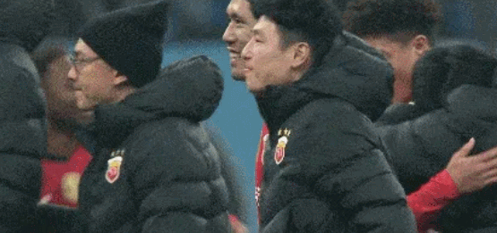 中超最后一輪,海港1-0小勝英博,實現中超三連冠,賽后武磊與隊友一起慶祝奪冠。