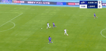 第45+8分鐘,王獻(xiàn)鈞手球送點(diǎn),吳曦一蹴而就,申花客場2-0領(lǐng)先津門虎