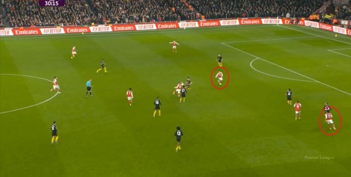 那就是他對(duì)于阿森納雙中場(chǎng)和雙后衛(wèi)之間的空間,也就是“洞”的精準(zhǔn)利用。