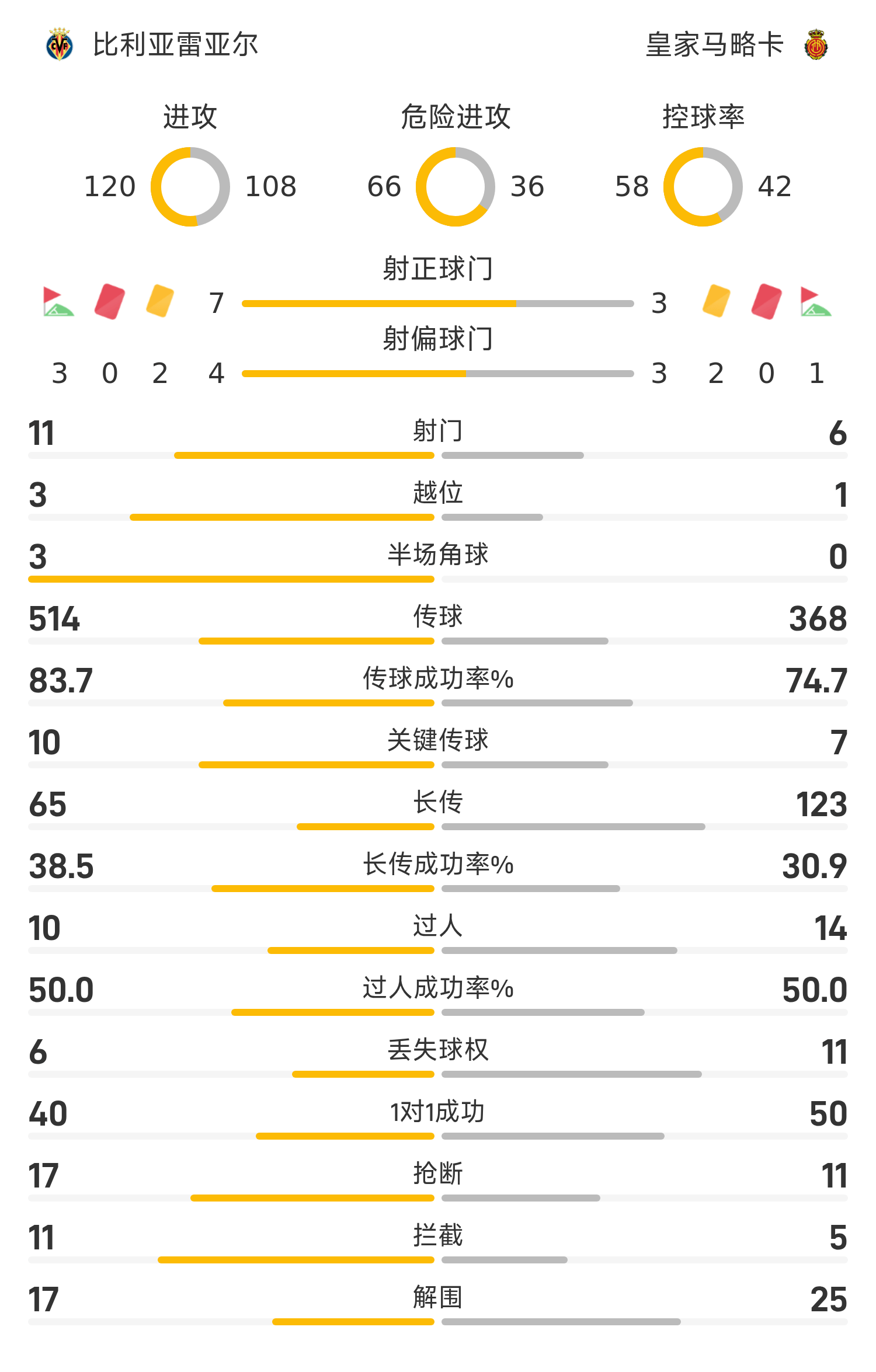 雷速體育11月23日訊 25/26賽季西甲聯賽第13輪,比利亞雷亞爾2-1戰(zhàn)勝皇家馬略卡,上半場莫雷諾破門,科斯塔扳平,下半場伯格斯特倫神撲,奧盧瓦塞伊建功。