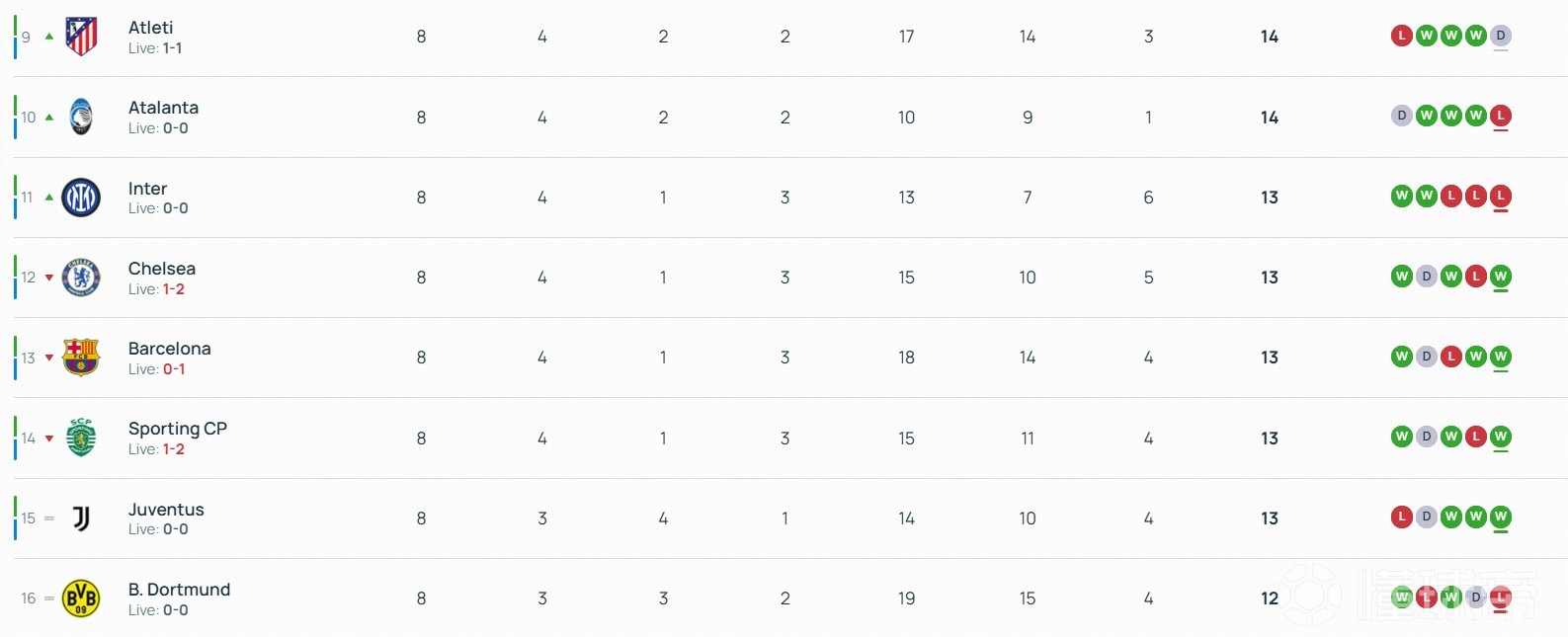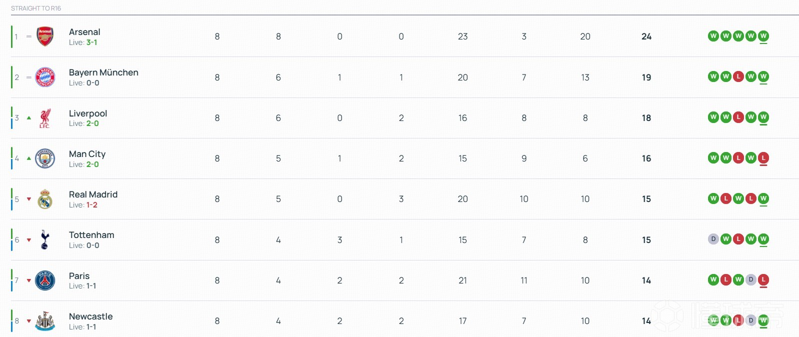 北京時(shí)間1月29日,歐冠聯(lián)賽階段最后一輪18場(chǎng)比賽全部結(jié)束了上半場(chǎng)的爭(zhēng)奪。上半場(chǎng)結(jié)束后,曼城進(jìn)入前八名,切爾西掉出前八名。西甲雙雄皇馬、巴薩目前都暫時(shí)落后,分別掉至第5和第13。