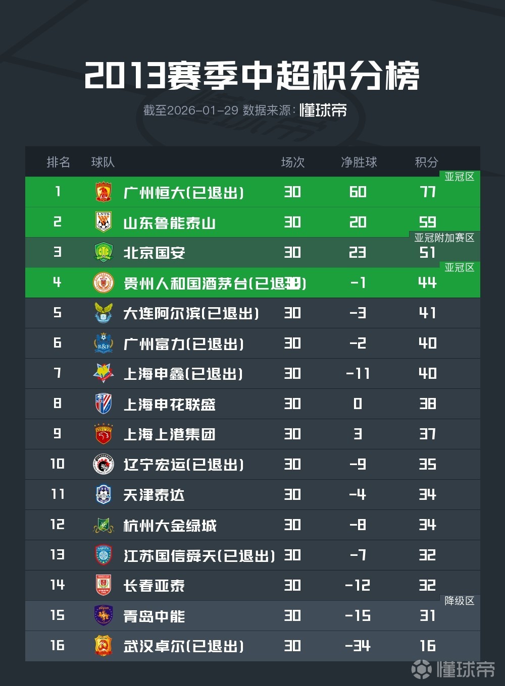 2013年,上海申花聯(lián)盛(上海申花)與天津泰達(dá)(天津津門虎)被扣除6個(gè)聯(lián)賽積分。當(dāng)年的中超參賽球隊(duì)里,至今未解散的山東魯能泰山(山東泰山)、北京國安、上海申花聯(lián)盛(上海申花)、上海上港集團(tuán)(上海海港)、天津泰達(dá)(天津津門虎)、杭州大金綠城(浙江)、長春亞泰、青島中能(青島海牛)今年均遭處罰,其中申花、津門虎為二次被罰。