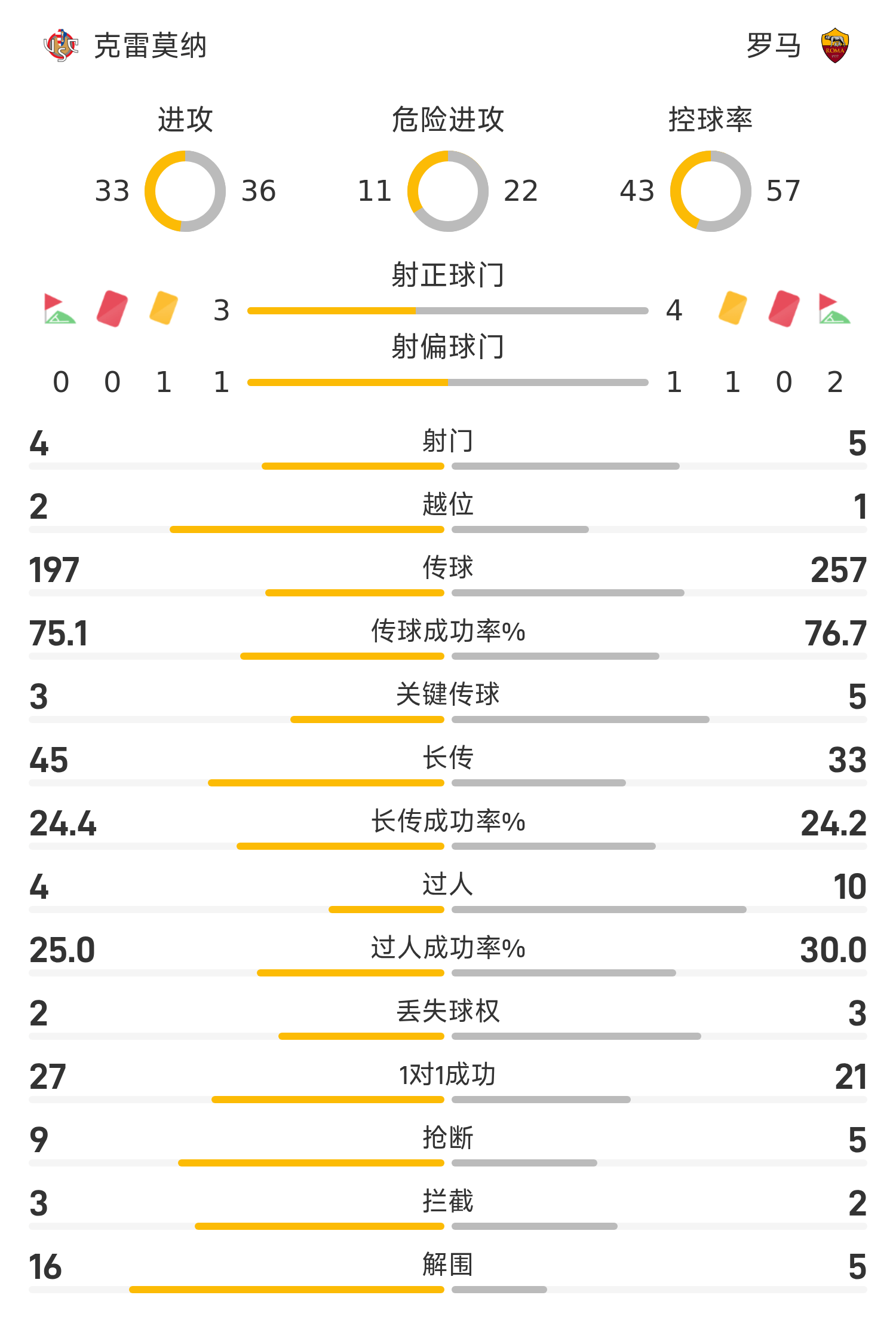 克雷莫納替補陣容:16-西爾維斯特里、69-納瓦、23-切凱里尼、3-佩澤拉、55-福利諾、8-瓦洛蒂、33-格拉西、19-薩米恩托、48-羅德基帕尼澤、20-巴斯克斯、99-薩納布里亞、11-約翰森