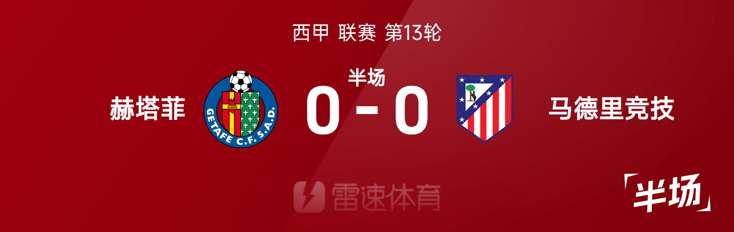 雷速體育11月24日訊 25/26賽季西甲聯(lián)賽第13輪,赫塔菲迎戰(zhàn)馬德里競技。半場戰(zhàn)罷,雙方比分暫為赫塔菲0-0馬德里競技。