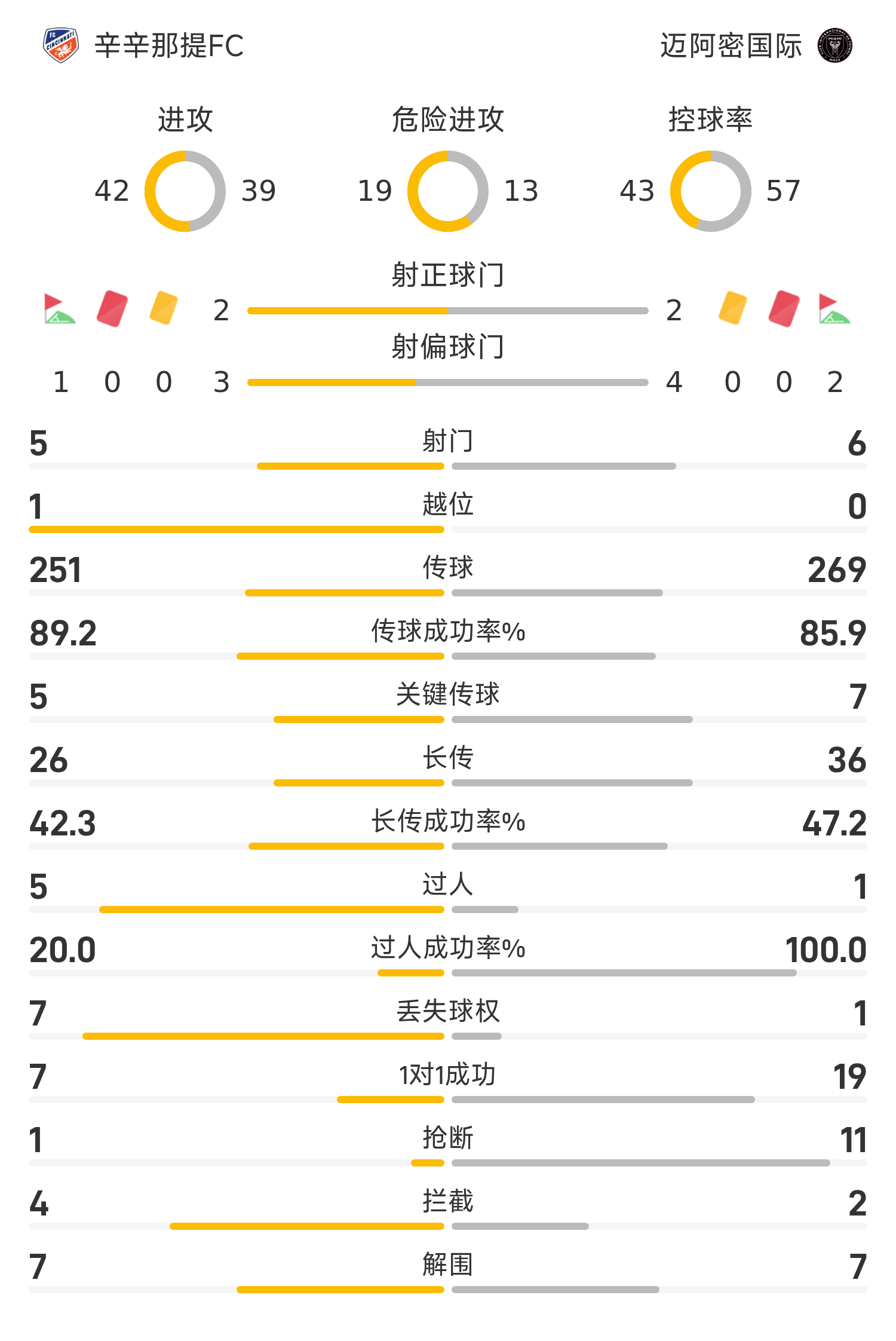 邁阿密國際替補陣容:19-烏斯塔里、2-盧揚、6-阿維萊斯、8-塞戈維亞、42-布萊特、81-莫拉萊斯、9-蘇亞雷斯、14-皮考特、29-奧班多