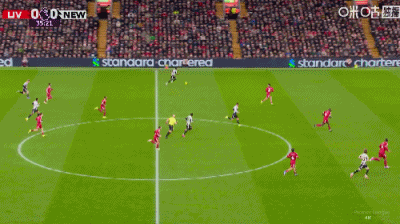 第36分鐘,戈登禁區(qū)右路低射遠(yuǎn)角破門,紐卡1-0利物浦
