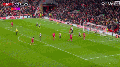 第36分鐘,戈登禁區(qū)右路低射遠(yuǎn)角破門,紐卡1-0利物浦