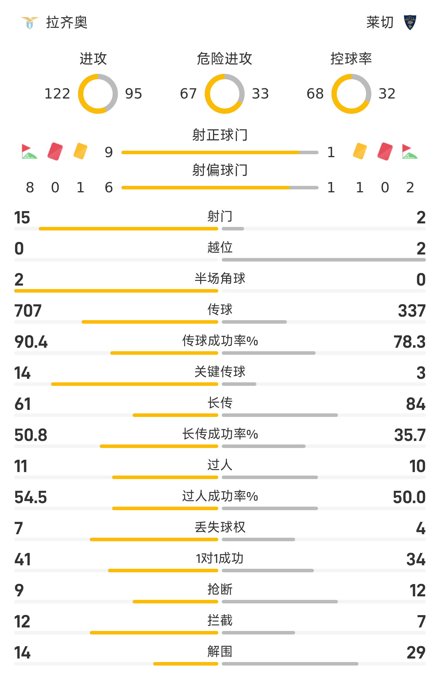 雷速體育11月24日訊 25/26賽季意甲聯賽第12輪,拉齊奧2-0戰(zhàn)勝萊切。上半場第29分鐘,貢多齊破門,幫助拉齊奧取得領先。易邊再戰(zhàn),迪亞進球被吹。補時階段,諾斯林反擊破門,再入一球,幫助拉齊奧鎖定勝局。