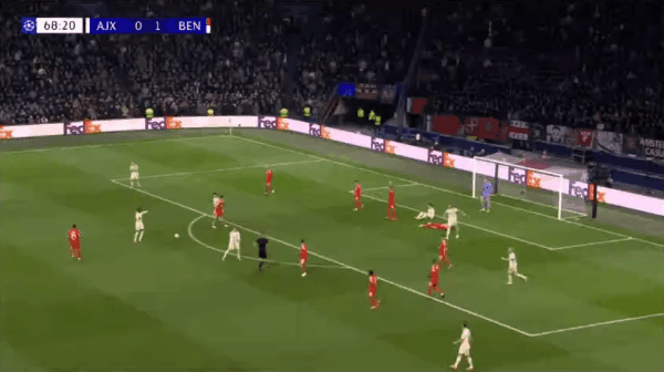 6’達(dá)爾抽射破門,阿賈克斯0-1本菲卡