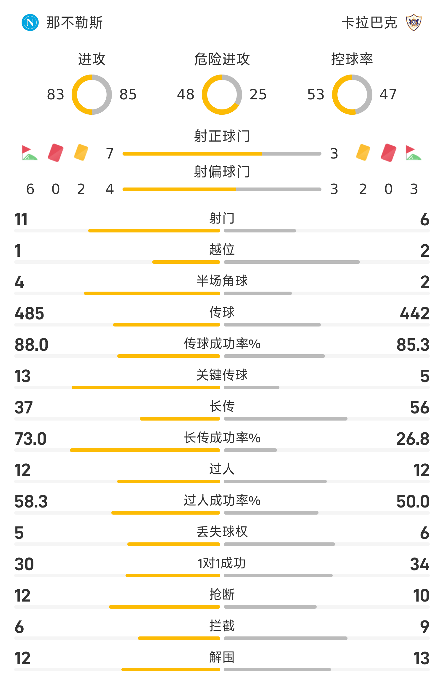 雷速體育11月26日訊 25/26賽季歐冠聯(lián)賽第5輪,那不勒斯主場對陣卡拉巴克。上半場比賽雙方踢得十分沉悶,甚至鮮有打門。下半場霍伊倫失點,麥克托米奈自己破門之后又造成揚科維奇烏龍,最終全場結(jié)束,那不勒斯主場2-0擊敗卡拉巴克。