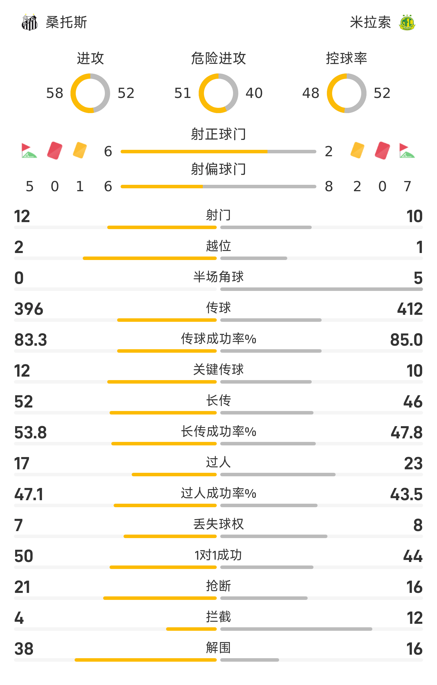 米拉索替補(bǔ)陣容:23-穆拉哈、20-博爾赫斯、4-奧塔維奧、44-克內(nèi)索維奇、12-吉列爾梅、41-Y.費(fèi)利佩、25-內(nèi)托、7-卡多佐、10-C.奇科、96-愛德華多、91-F.奇科、78-雷納托·馬奎斯