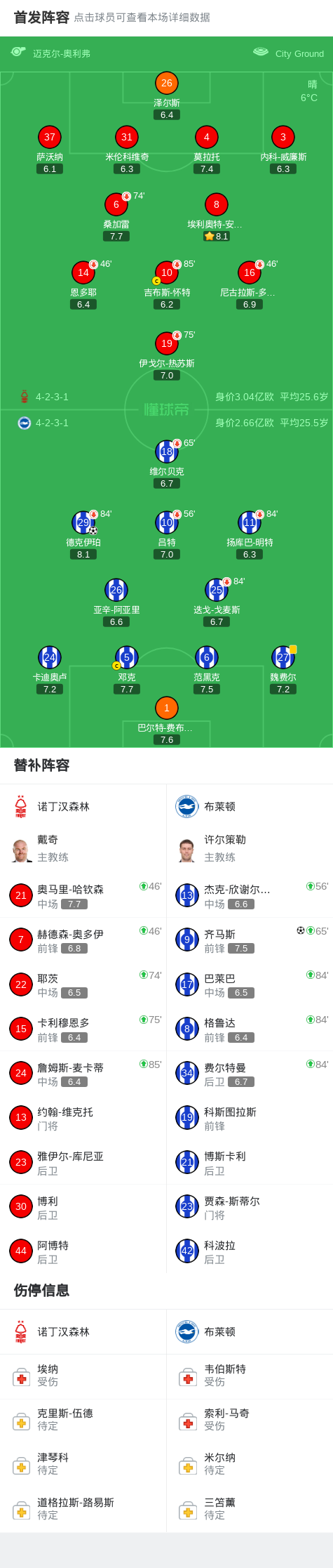 北京時間11月30日,英超聯(lián)賽第13輪,諾丁漢森林主場迎戰(zhàn)布萊頓。上半場補時階段,德克伊珀為布萊頓打破僵局。隨后比賽尾聲階段,莫拉托失誤,齊馬斯鎖定勝局。最終,布萊頓客場2-0完勝諾丁漢森林。