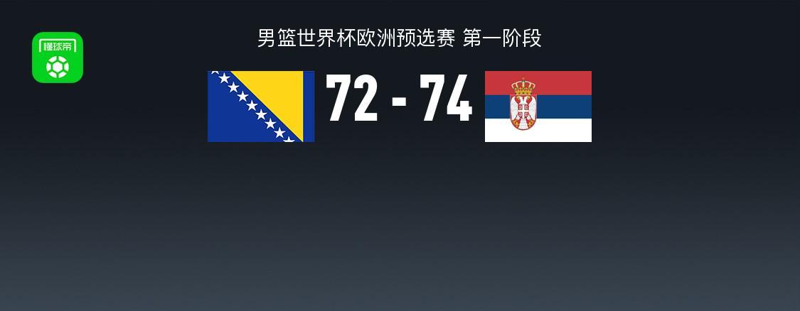 北京時間12月1日男籃世界杯歐洲預選賽 第一階段,波黑男籃對陣塞爾維亞男籃。半場波黑男籃39-35塞爾維亞男籃,最終波黑男籃72-74塞爾維亞男籃。波黑男籃澤維爾-卡斯塔內達19分3板3助,蘇里曼諾維奇11分5板3助;塞爾維亞男籃尼古拉-塔納斯科維奇24分8板1助,奧格尼恩-賈拉馬茲15分4板4助。