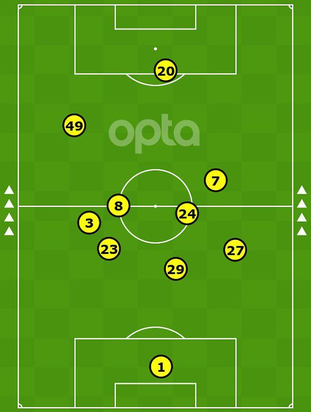 馬雷斯卡希望古斯托減少插上,因?yàn)樗麄儾荒茉俪惺芎蠓谰€(xiàn)從4人變成3人的風(fēng)險(xiǎn),同時(shí)他將佩德羅-內(nèi)托從左路換到右路,因?yàn)楹笳呤乔蜿?duì)中最不知疲倦的跑動(dòng)者。