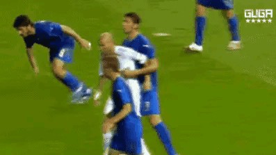 2006年7月10日,世界杯決賽,意大利與法國激戰(zhàn)至加時賽。加時賽第119分鐘,法國隊長齊達內(nèi)突然暴怒,用自己的頭將意大利的后衛(wèi)馬特拉齊撞倒。