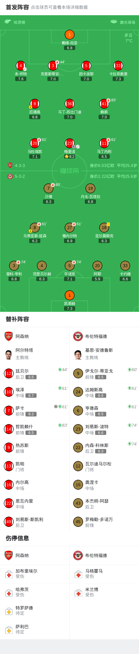 第11分鐘,本-懷特送出傳中,梅里諾頭球破門!阿森納1-0布倫特福德
