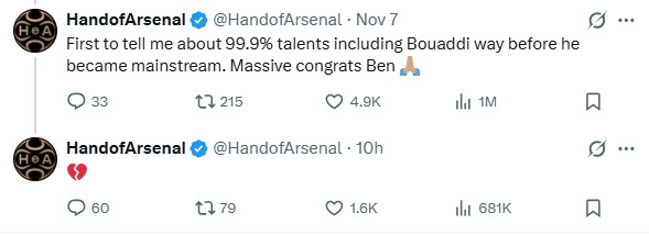 布阿迪是阿森納的長期目標(biāo),HOA則是阿森納真實(shí)性極高的大V,有消息甚至稱他可能是俱樂部的工作人員。因此,雖然Rodra的可信度遠(yuǎn)非板上釘釘,但HOA的反應(yīng)也能說明一些事情。