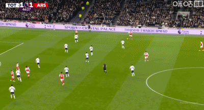 在英超第27輪的北倫敦德比中,雙方上半場戰(zhàn)成1-1平。第47分鐘,廷貝爾右路將球送到弧頂,皮球穿越了6名防守球員,送到了弧頂處哲凱賴什的腳下。埃澤在前點與德拉古辛對抗,身后的哲凱賴什無人防守,停球后一記勢大力沉的抽射掛入死角,令門將無可奈何!