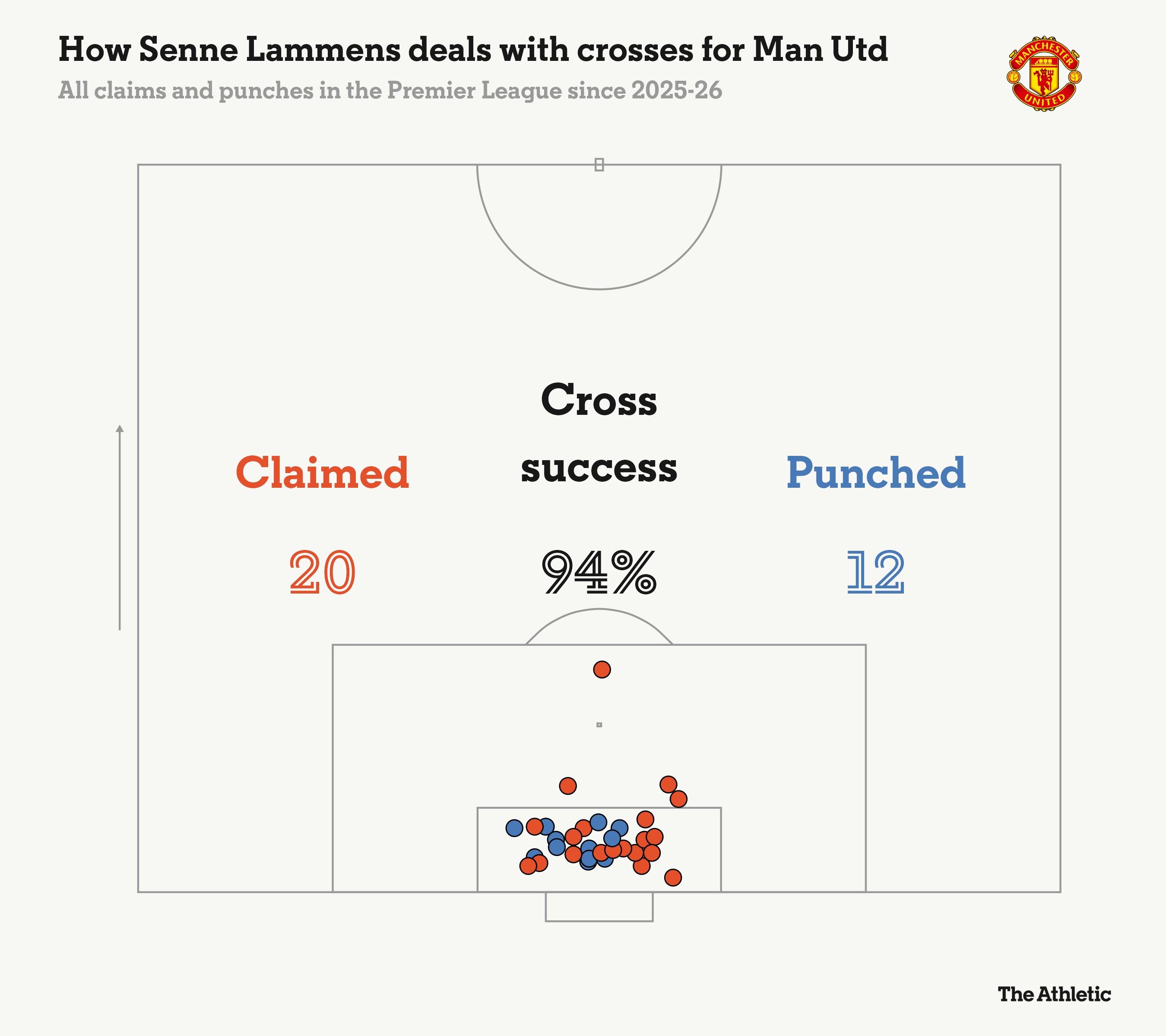 全場數(shù)據(jù)顯示,埃弗頓拿到10個角球,曼聯(lián)僅有1個;對手嘗試35次傳中,完成5次。拉門斯干凈摘下2次高空球,4次拳擊球解圍——這6次關鍵處理,在本賽季英超單場數(shù)據(jù)中并列第四,更難得的是,全部來自小禁區(qū)內。